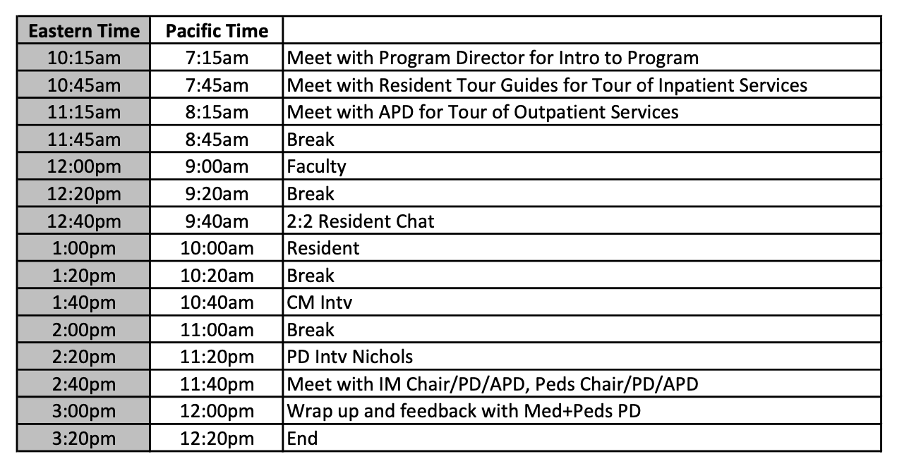Resident Meet & Greets are Wednesday evenings prior to interview days. Please look out for an email with further instructions!